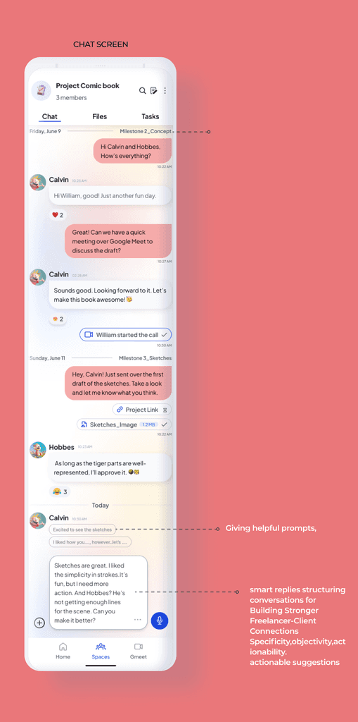 This case study aims to design a user-friendly collaboration feature in the existing google workspace to ensure transparency in communication for freelancers and their clients, and to provide a proactive workspace for both parties.