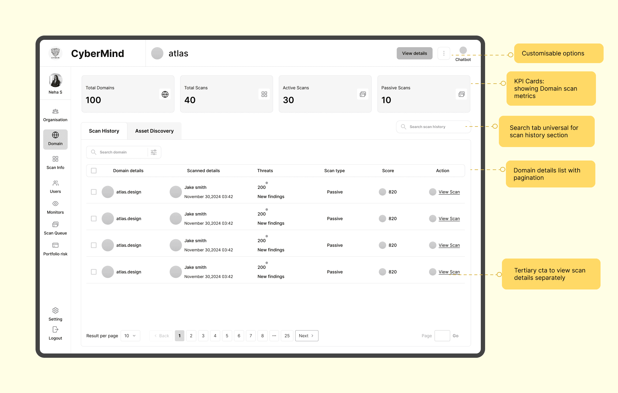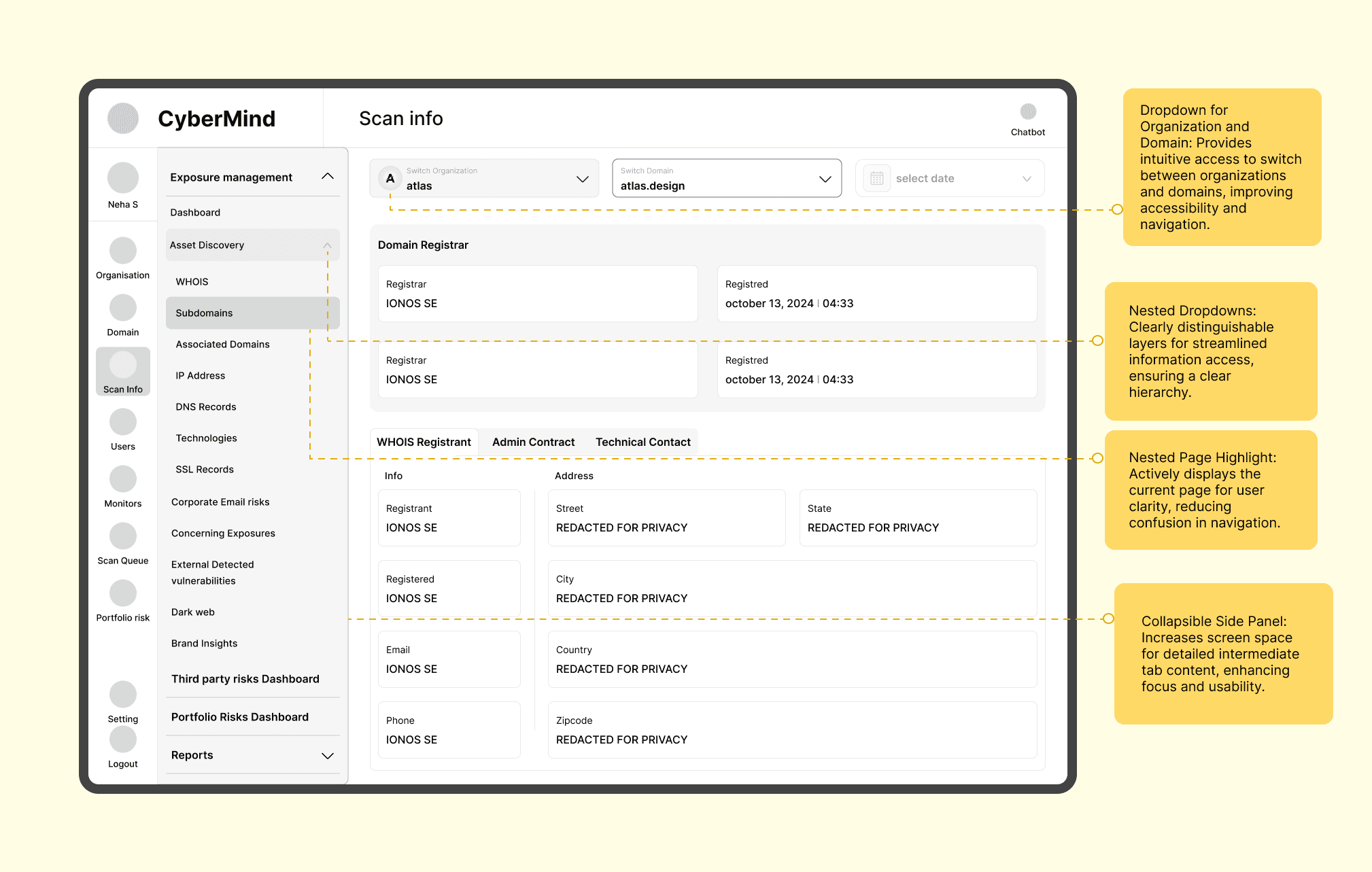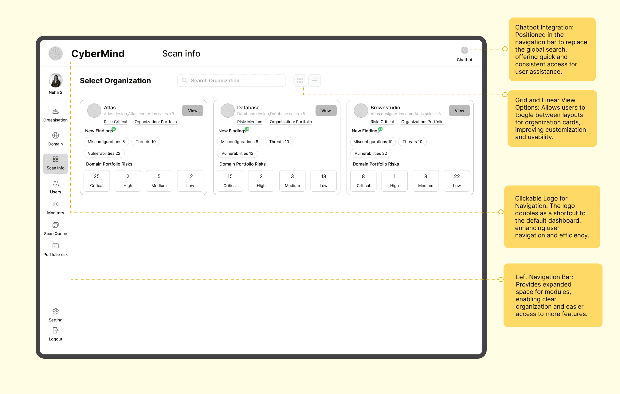 “Users of the Cybermind platform face challenges in completing key tasks, such as monitoring scans and vulnerabilities, due to complex navigation. Simplifying and streamlining the platform's navigation with a more intuitive, user-guided experience will enhance usability and provide a seamless experience for users.”